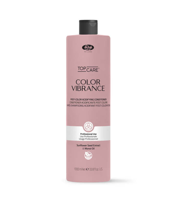 Lisap Color Vibrance Post Color Acidifying Conditioner —це професійний кондиціонер з кислотно-лужним балансом 3.0-3.8 од., розроблений для догляду за фарбованим та освітленим волоссям. Може використовуватися як для щоденного догляду, так і в комплексі з кислим технічним шампунем для завершення процедури фарбування чи освітлення. Допомагає відновити природний pH баланс волосся, закриває його кутікулу та запобігає окисленню кольору, що сприяє його довговічності та яскравості. Основні переваги: