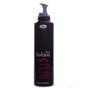 Піна-мус сильної фіксації Lisap Fashion Extreme mousse design strong підходить для створення гладких, еластичних і в’юнких зачісок на всіх типах волосся. Створює об’єм, фіксує, надає волоссю м’якість і блиск, зберігає його природній вигляд. До складу піни Fashion Extreme mousse design strong входить комплекс гідролізованих протеїнів шовку, гідролізований кератин, арганове масло, ліпо-аміно-силіконовий комплекс, фільтри для захисту від ультрафіолетового випромінювання, D-пантенол і хеліогенол. Не склеює і не жирнить локони. Не містить важких силіконів, що здатні накопичуватись на волоссі.